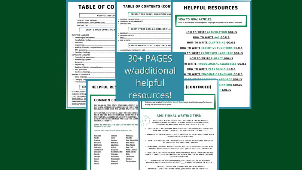 Speech Therapy Goal Bank for Measurable Treatment Goals: School-Aged